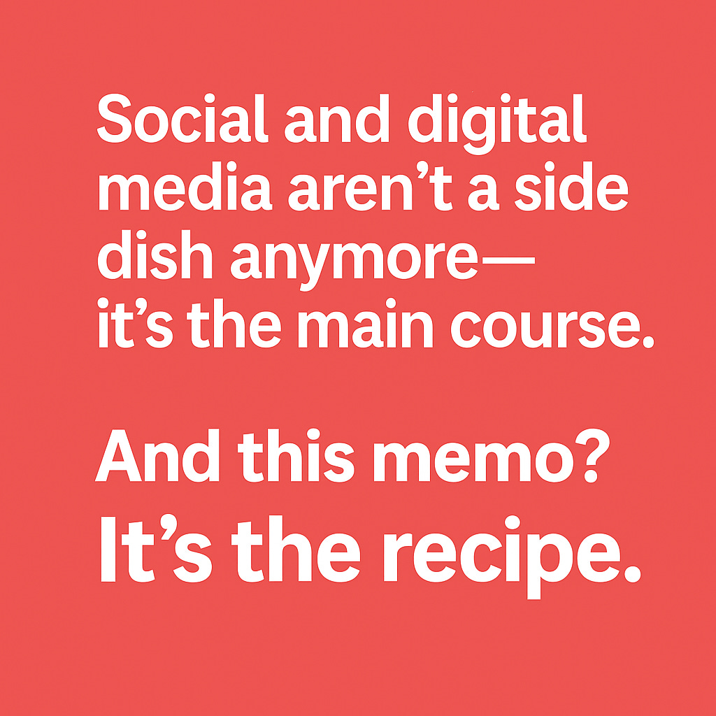 Social and digital media aren’t a side dish anymore—it’s the main course. And this memo? It’s the recipe.